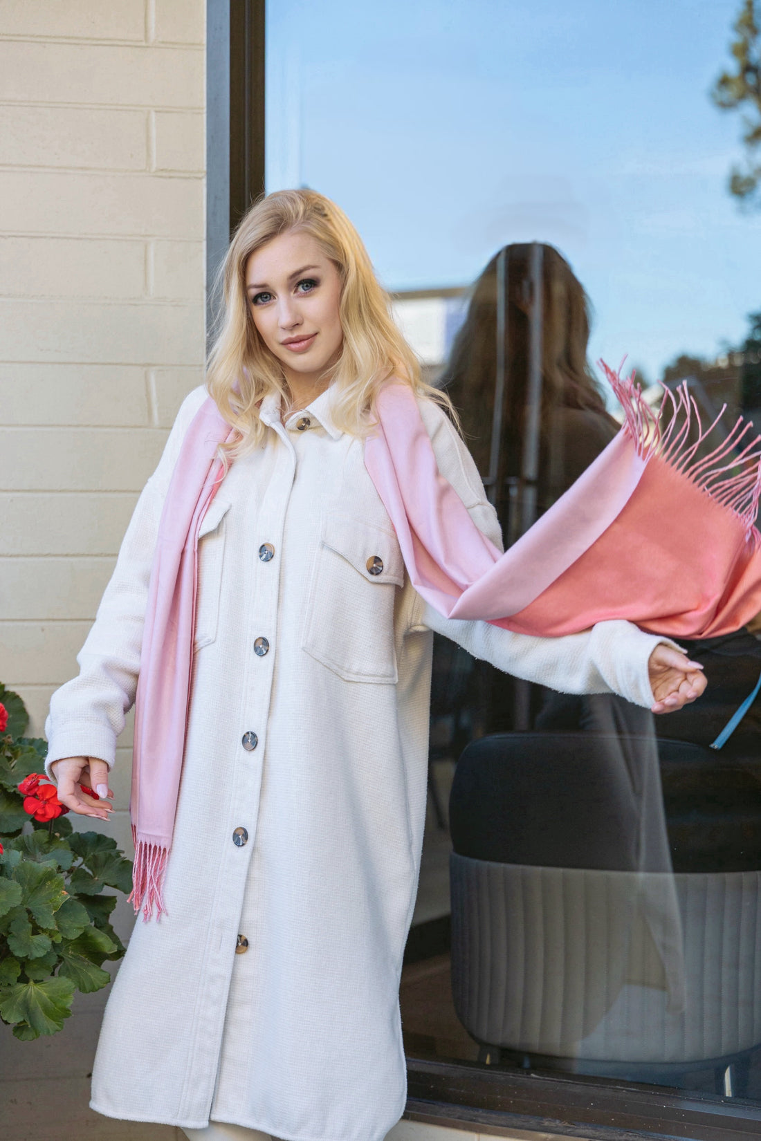 Blush pink, reimagined in soft cashmere. Double sided, handwoven cashmere that feels light, warm, and...